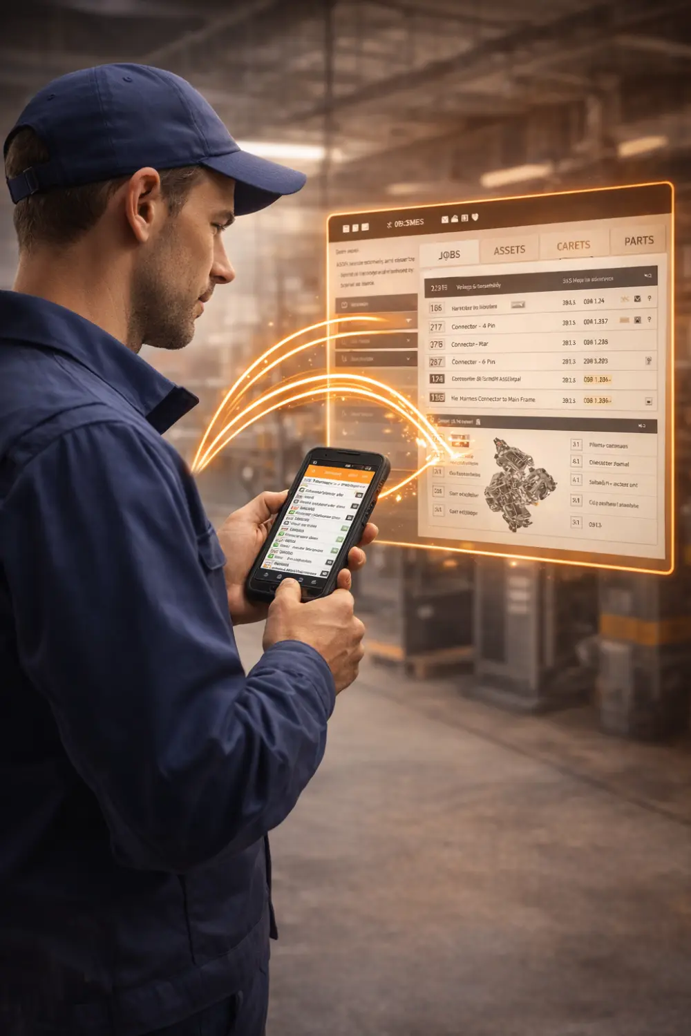 Engineers no longer search for manuals or re-key part details. AnswersAnywhere supplies service-ready equipment intelligence at the point of execution, while the FSM remains the system of record.